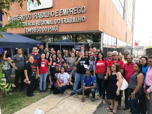 Diversas entidades representativas de trabalhadores se juntaram aos fiscais do trabalho em manifestação na SRTE-PI, no Centro de Teresina, na última quarta-feira (25/10), no Dia Nacional de Paralisação em protesto contra as mudanças feitas pelo Ministério do Trabalho com relação à fiscalização de combate ao trabalho escravo em todo o país, por meio da Portaria 1.129/2017 que afrouxa as regras de fiscalização e combate a situações de trabalho análogas à escravidão, ainda registradas em pleno século XXI.
